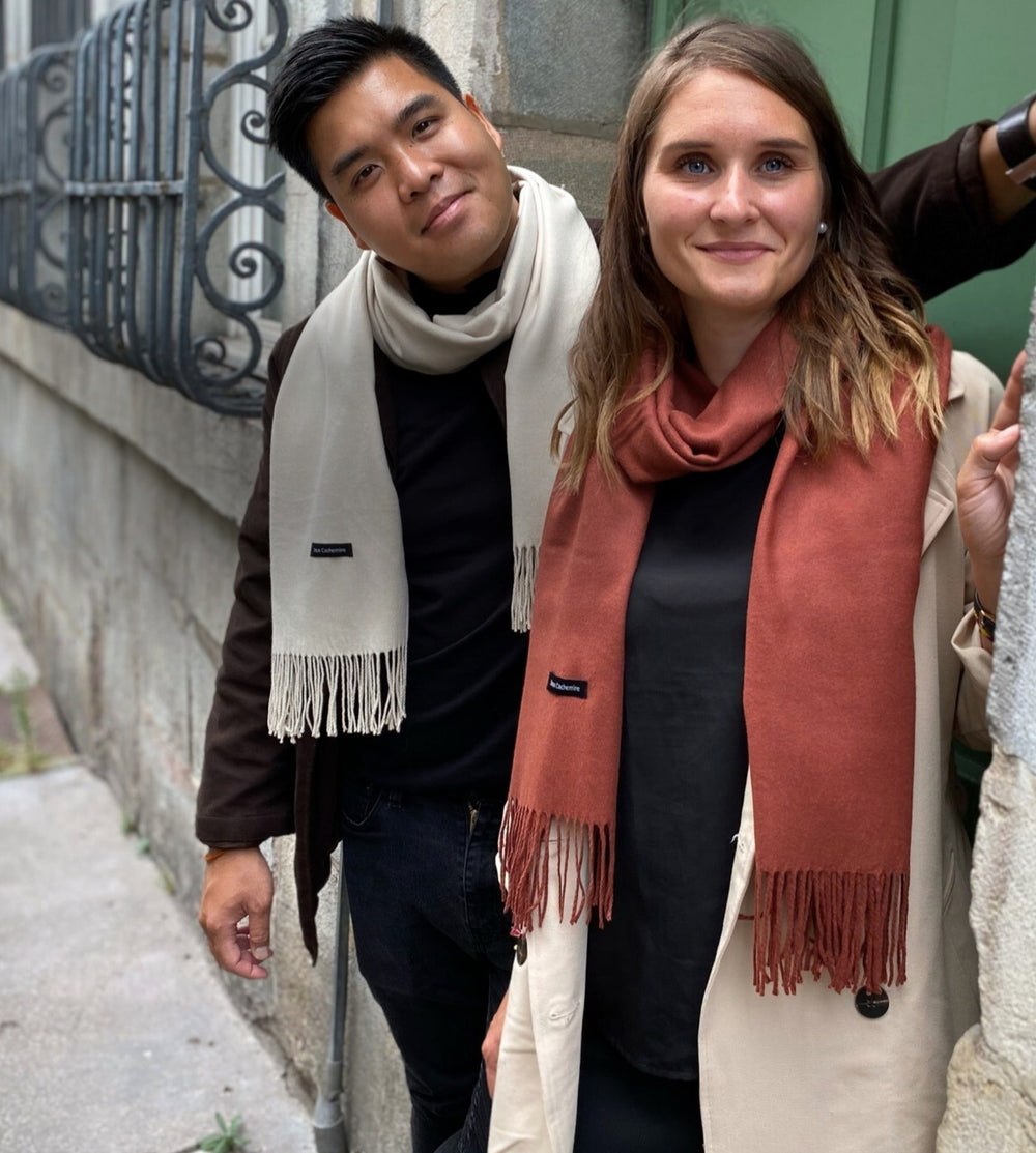 Was wir bei Doux Cachemire lieben, ist der Geist des Teilens und der Geselligkeit. Unsere Schals sind unisex und sehr einfach zu tragen. Wir lieben es, sie auszuleihen, auszutauschen und manchmal sogar zu verschenken. Wir haben immer die Vorstellung geliebt, dass unsere Schals unter dem Weihnachtsbaum liegen, in einer warmen und fröhlichen Atmosphäre. Einen Doux Cachemire-Schal zu verschenken ist eine einzigartige Erfahrung, sowohl für den Schenkenden als auch für den Empfänger. Die Überraschung des so weichen Griffs ist immer bewegend, da sie eine Botschaft der Liebe und des Trostes in einer oft melancholischen Jahreszeit übermittelt.