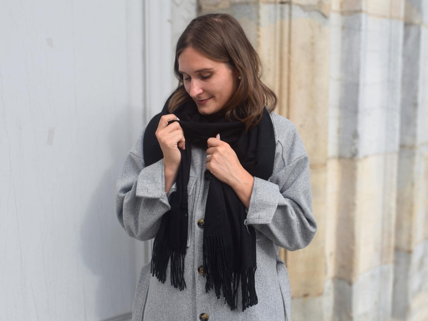 VirginieWinterlook mit schwarzer Jacke und meinem neuen Doux Cachemire Schal 🤍
