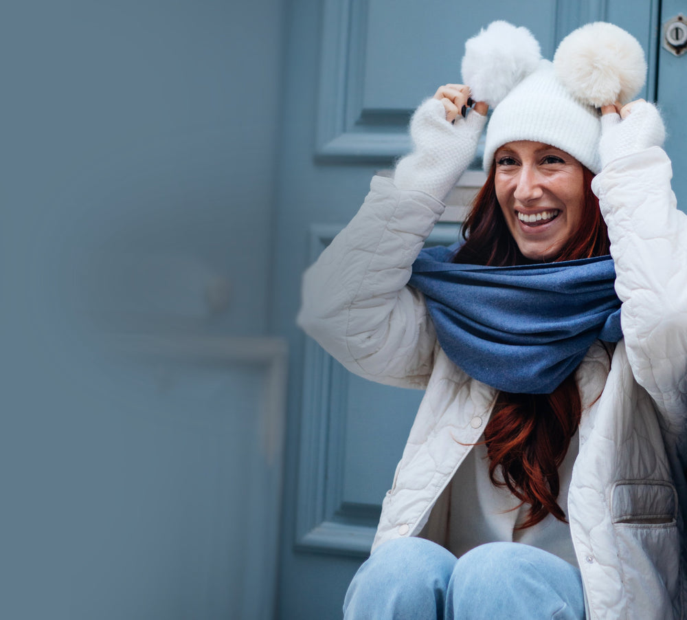 Just like our cashmere scarves, our pom-pom hats can be worn by both women and men. Since sharing is one of our core values at Doux Cachemire, we love the idea of them being worn by all members of your family.