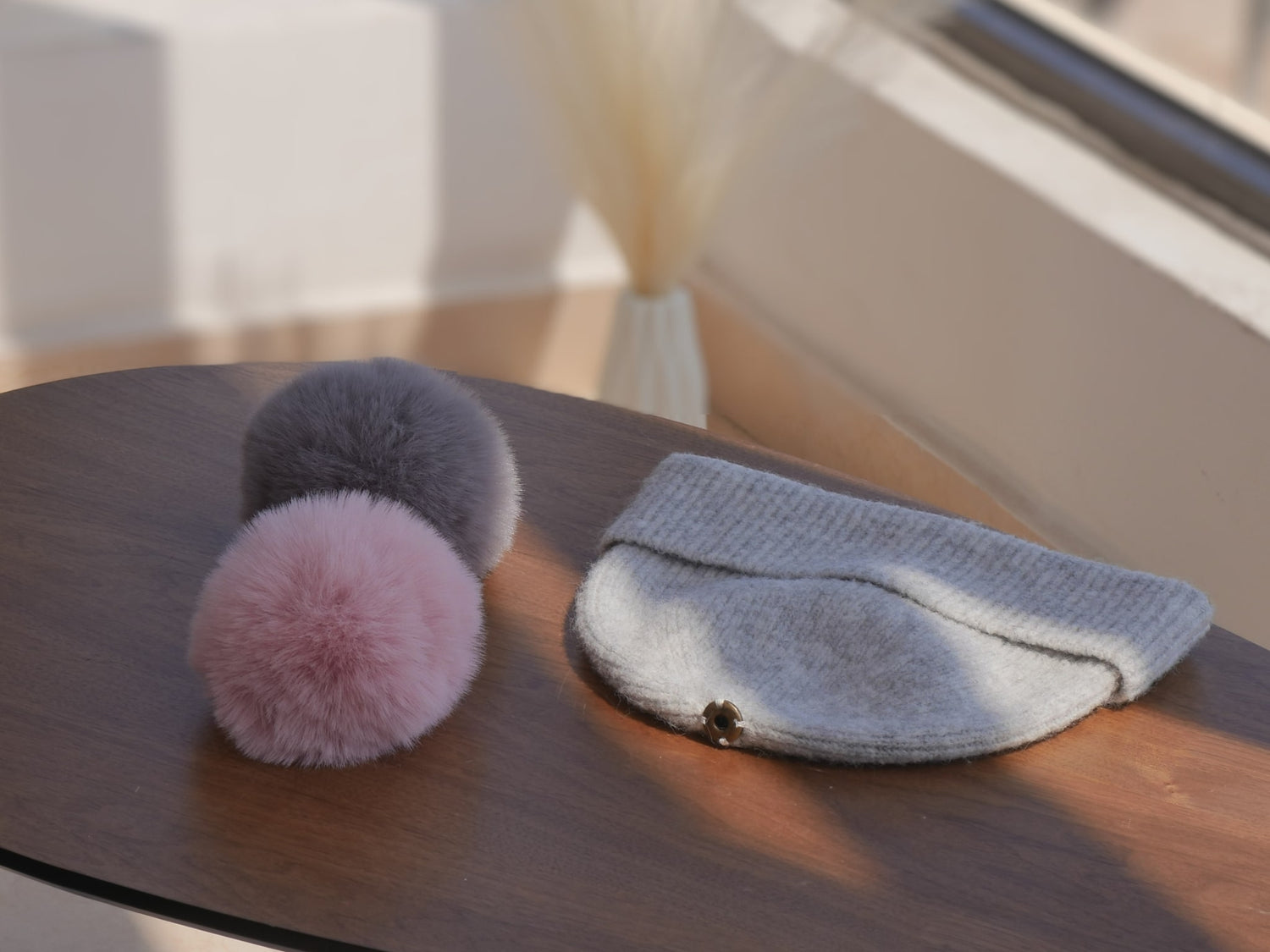 As for the colors, you can choose between tone-on-tone or contrasting. It's up to you which pom-pom you want to combine with your hat today.