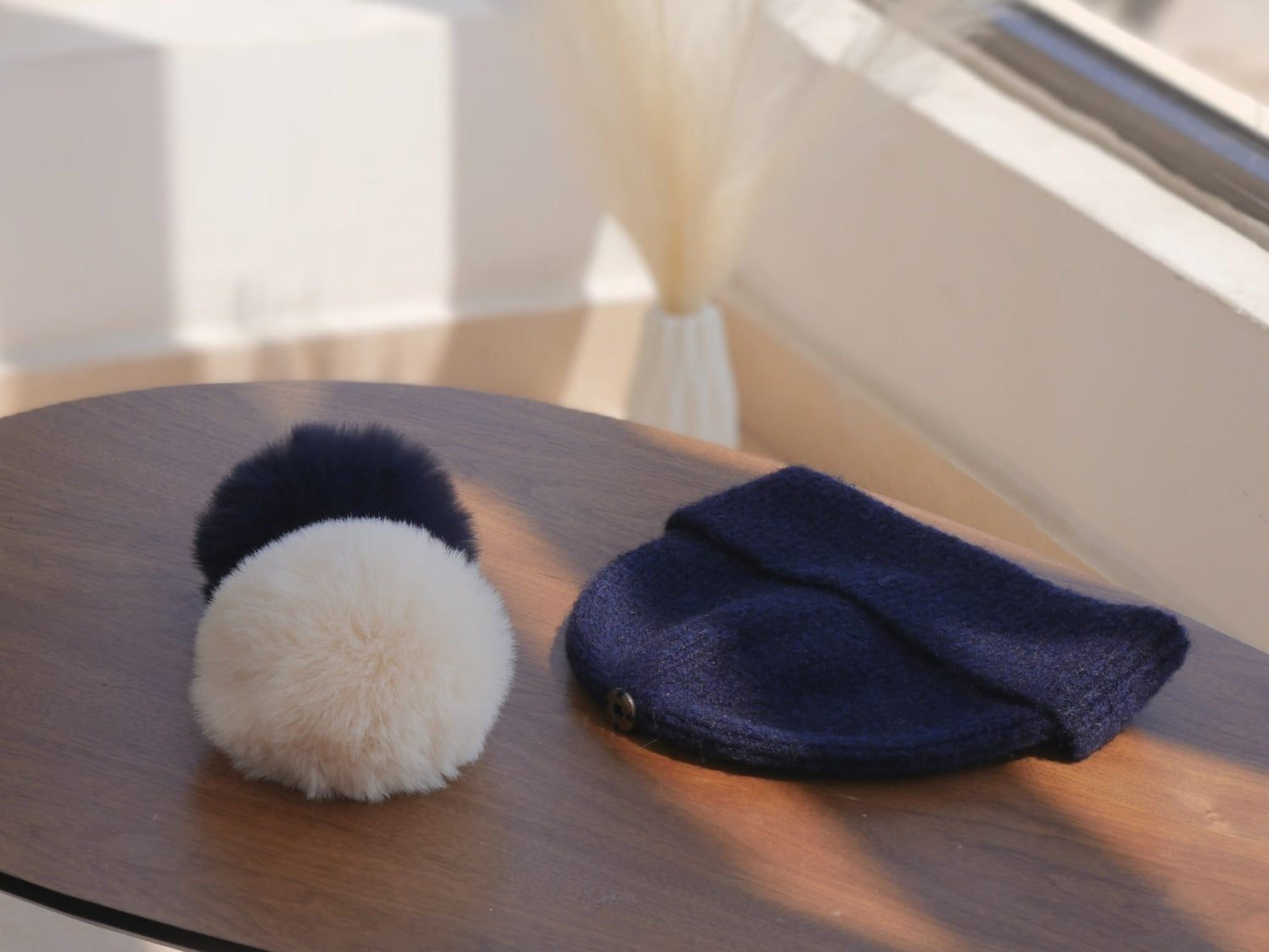 Our navy blue cashmere hat is a versatile accessory that pairs beautifully with many outfits, thanks to its removable pompom. Here are a few ideas to wear it with style: