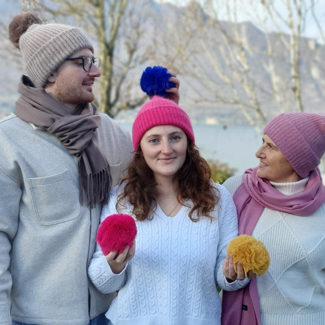As for the colors, you can choose between tone-on-tone or contrasting. It's up to you which pom-pom you want to combine with your hat today.
