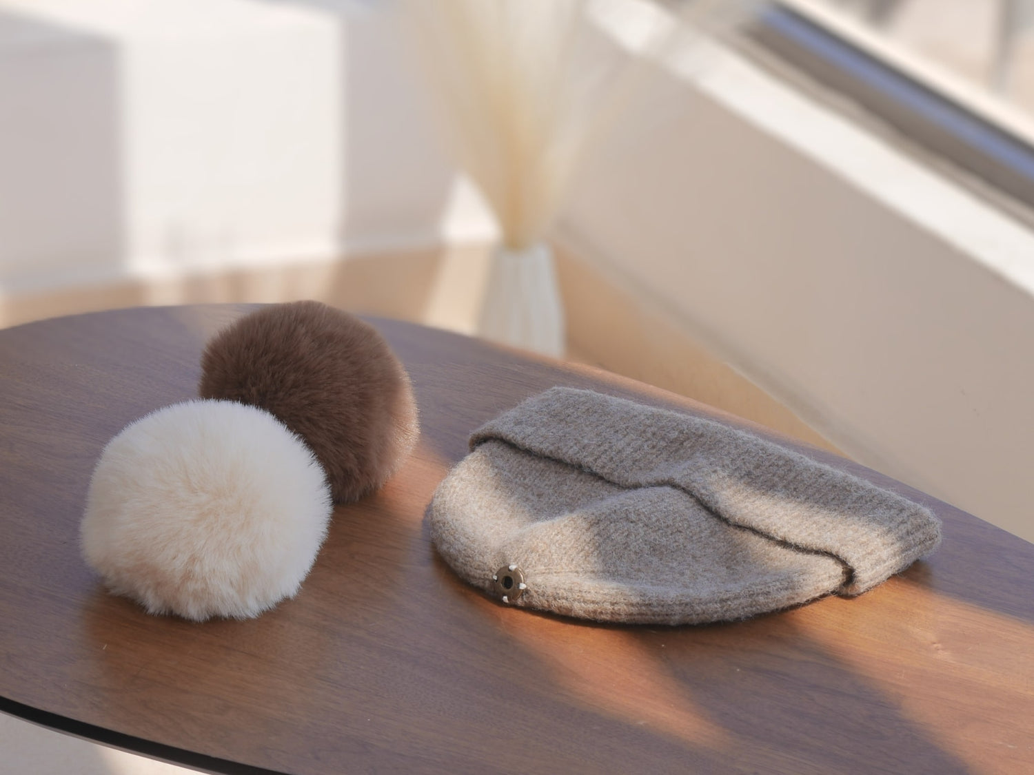 The hat’s adjustable fold-over edge ensures a perfect fit for men, providing absolute comfort. Its two matching taupe and beige pompoms offer style variation, and the removable system lets you wear the hat with or without pompoms according to your preference and occasion.