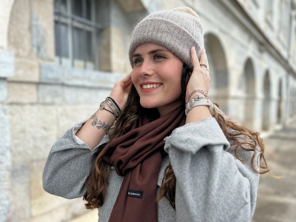 To create this unique taupe palette, Doux Cachemire collaborated with artisans possessing exceptional expertise in cashmere dyeing and weaving. Each fiber is carefully selected and meticulously crafted, resulting in a hat of unparalleled quality.